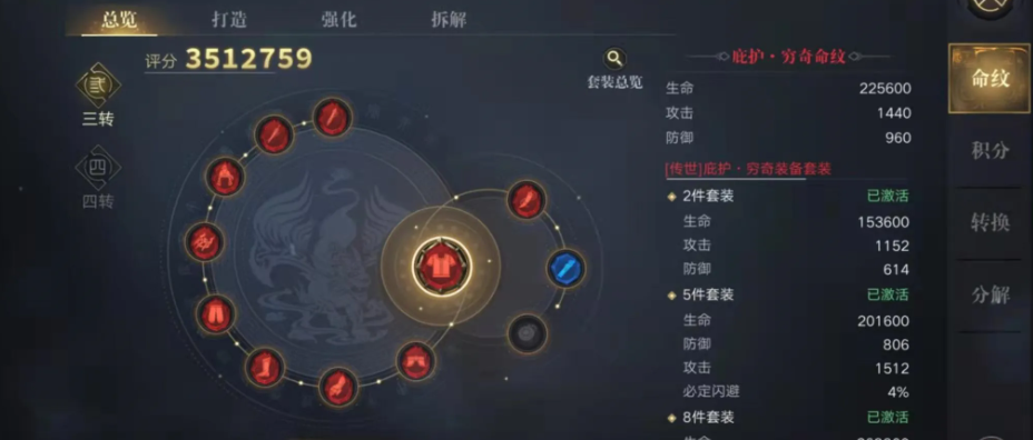 摸金命纹的具体选择需要紧密结合职业特性与游戏阶段。摸金校尉作为高爆发的近战职业,在命纹搭配上应优先考虑攻击类属性。在游戏前期或零转阶段,可以选择如莫邪女灰居士套装进行过渡,它能提供可观的无双一击加成。进入三转阶段后,推荐使用穷奇·专注命纹套装,该套装能有效提升对粽子的伤害,非常适合副本推进。达到四转阶段时,选择则需要根据角色当前的属性面板进行精细化调整,若致命一击概率尚未达到较高水平,推荐使用凤凰·鲁莽命纹来提升暴击几率;若致命属性已经堆叠得比较高,则凤凰·武勇命纹会是更优的选择。